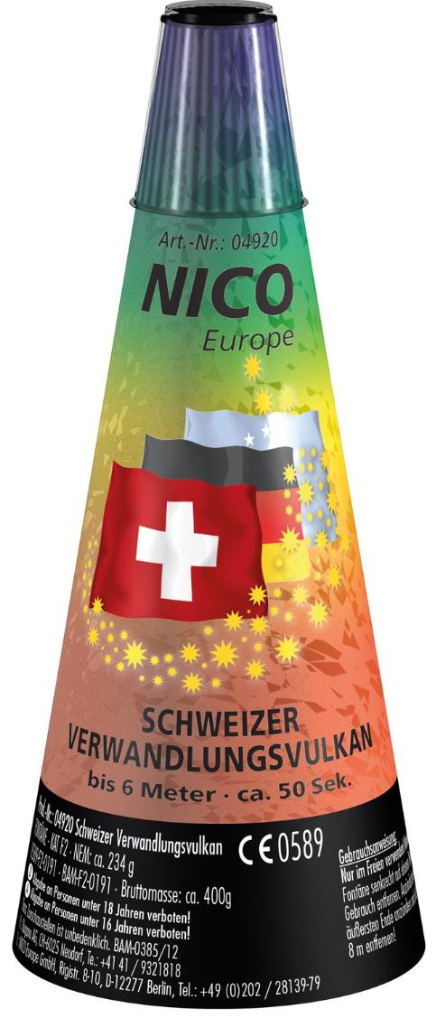 Dieser hochwertige F2-Premium-Vulkan aus Schweizer Qualitätsfertigung überzeugt mit einer MEGA Verwandlungs-Fontäne von Gold auf Silber. Freuen Sie sich auf ein Spektakel von 50 Sekunden bei einer Effekthöhe von bis zu spektakulären 6 m.