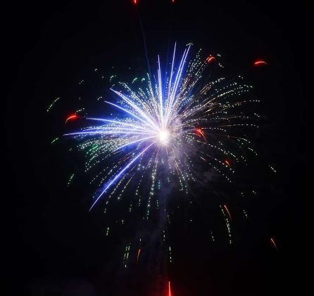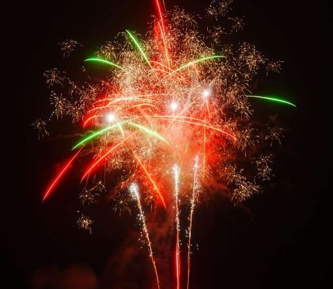 Langlaufende großkalibrige 54 Schuss Batterie, vielfältige Effekte, geschossen in Gabeln, Fächern und Salven mit bunten Sternbuketts, rauschenden Verwandlungssternen, Titan-Lanzen und großen Dahlien Sternen, endend in einem Finale mit zwei breiten Salven mit lang ziehenden silbernen Time-Tree Effekten. Verkaufsbeschränkung F3