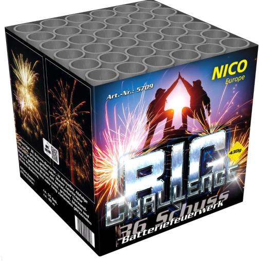 Vielseitige 36 Schuss-Batterie, in schneller Abfolge mit roter, grüner, gelber oder blauer Leuchtspur aufsteigende Bombetten mit anschließender lautstarker Verwandlung zu goldenen Brokatkronen, grünen/ blauen/ roten Sternenwolken oder glitzernden langziehenden Weiden-Buketts.