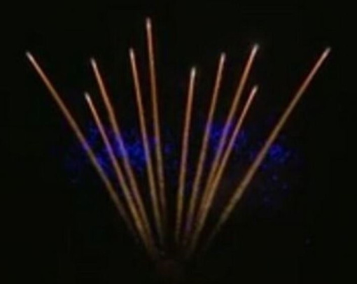 Gold rain to blue comet with blue mine (10er Fächer, Einzelreihe, fan-shape)