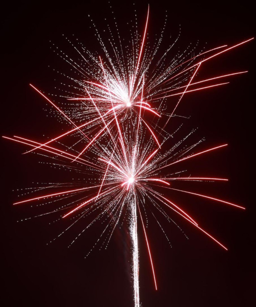 Verkaufsbeschränkung F3 oder für Österreich / Schweiz erhältlich! 2 Zoll Premium-Batterie mit 4 Hammer-Effekten mit silbernem Glitzeraufstieg und heftiger Zerlegung zu roten Dahlien, Brokratkronen oder langziehenden Time-Rain-Willow Effekten umrahmt von unzähligen Glitzersternen.