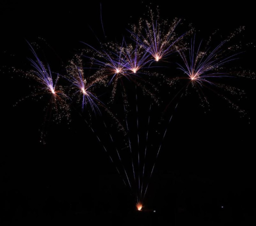 Single Row, 6 Schuss nacheinander gefächert mit blauer Leuchtspur aufsteigend und anschließende Verwandlung zu goldenen Crackling-Kronen mit blauen Sternen.Sie zaubert ein farbenfrohes Feuerwerk in den Himmel und erleuchten die Nacht mit einzigartigem Glanz. Profis werden von der einfachen Handhabung und dem schnellen Aufbau begeistert sein, während Feuerwerks-Fans sich über die wunderschönen gefächerten Effekten freuen können!