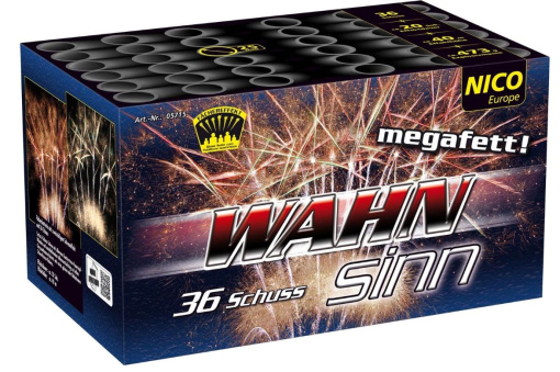 Diese megafette Fächerbatterie mit zweistufigem Salveneffekt und 36 Schuss ist wirklich der Wahnsinn, also haltet euren Puls im Blick! 6 weit aufgefächerte 6er-Salven mit silbernen Knatterstern-Feuertopf-Wänden in der unteren Ebene und anschließendem silbernen Aufstieg zu riesigen, hellen Knatterstern-Buketts mit satter Zerlegung und roten, grünen oder lilanen Schweifstern-Fächern füllen den Himmel komplett aus. Nur das Grinsen beim Anschauen ist noch größer!