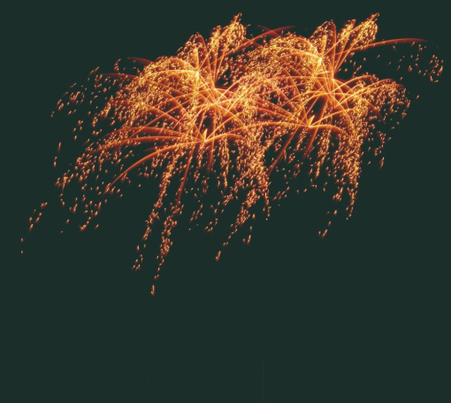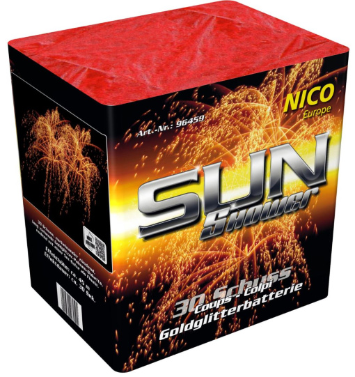 30 Schuss Profi Batterie mit langziehenden Goldflimmer Lanzen, endet mit einer kräftigen 5er-Salve als Finale.