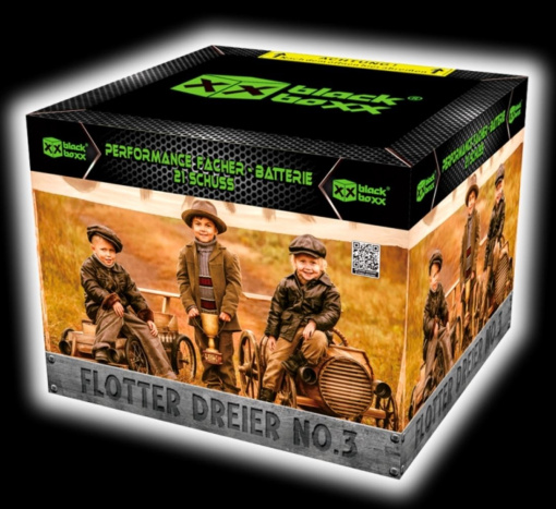 Performance-Fächer aus Crackling Ball-Feuertöpfen, durchzogen von Silberschweifkometen und mit Verwandlung zu Crackling Balls mit violetter Dahlie mittig und Crackling Balls mit roter Dahlie an den Außenseiten, Abschuss im W-Fächer und mit schneller Schlusssequenz.