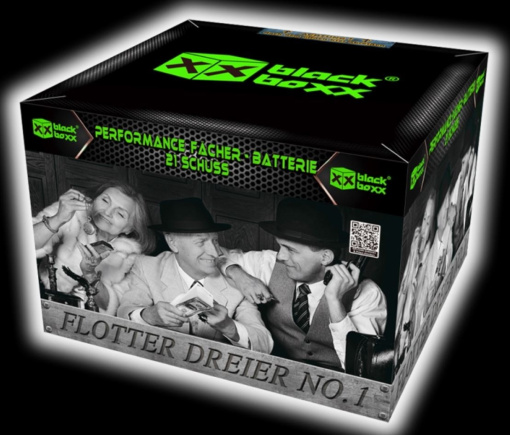 3er Fächer mit Wechsel-Effekt. Fächer aus Brokatfeuertöpfen und Farbkometen mit Verwandlung zu Brokatpalmen in blauer Päonie, kombiniert mit farbig wechselnden Dahlien in blauer Päonie.