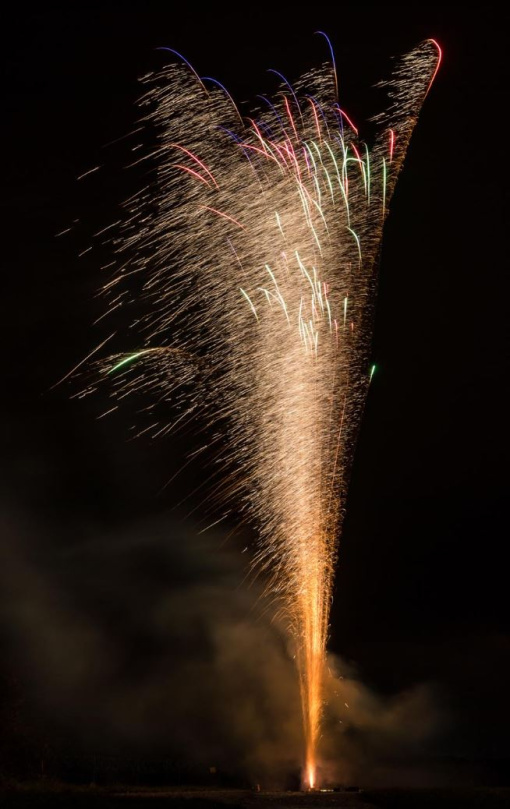 19 Schuss, nacheinander circa 35 m hoch und 12 m breit ausstoßende Brokat-Feuertopf-Effekte mit roten, grünen und blauen Sternspitzen, endend in einem Finale mit 3 gleichzeitig aufsteigenden Feuerwänden.