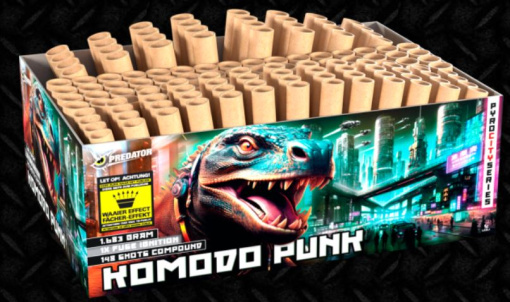 Der Komodo Punk beißt sich mit 148 Schüssen, die eine atemberaubende, fächerförmige Show erzeugen in deinem Gedächtnis fest. Dieser „ Punk “ bietet ein beeindruckendes visuelles Erlebnis, bei dem starke Effekte aufeinander folgen. Lass Dich von den explosiven Farben und der Energie, die der Komodo Punk bei jedem Schuss bietet, überraschen!